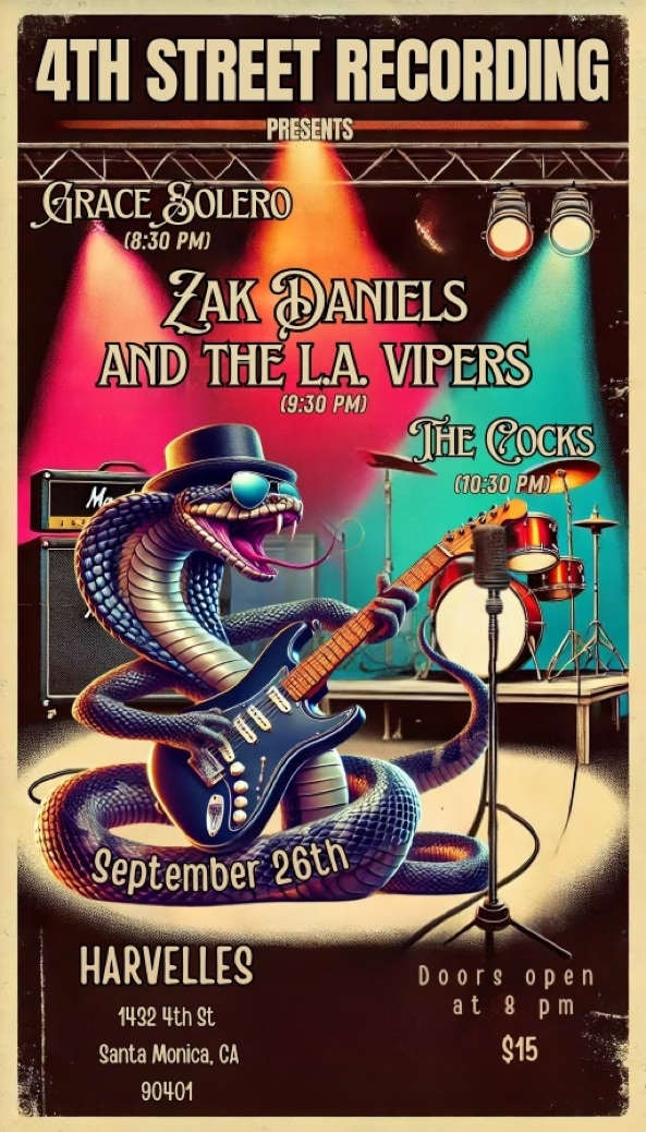 "With a mischievous wit Daniels turns introspection and observation of everyday events and situations into an art form and he and the Snakes also rock the house."